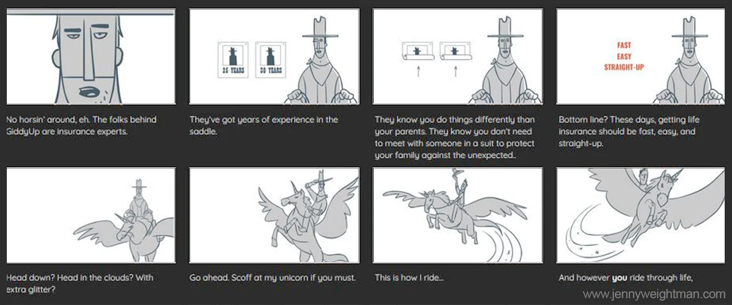 We wanted to show that death is inevitable in a humorous way— so the cowboy character always dies at the end, and each video has a unique ending — the cowboy rides off on a new animal each time. However you ride through life, we’ve got you covered.